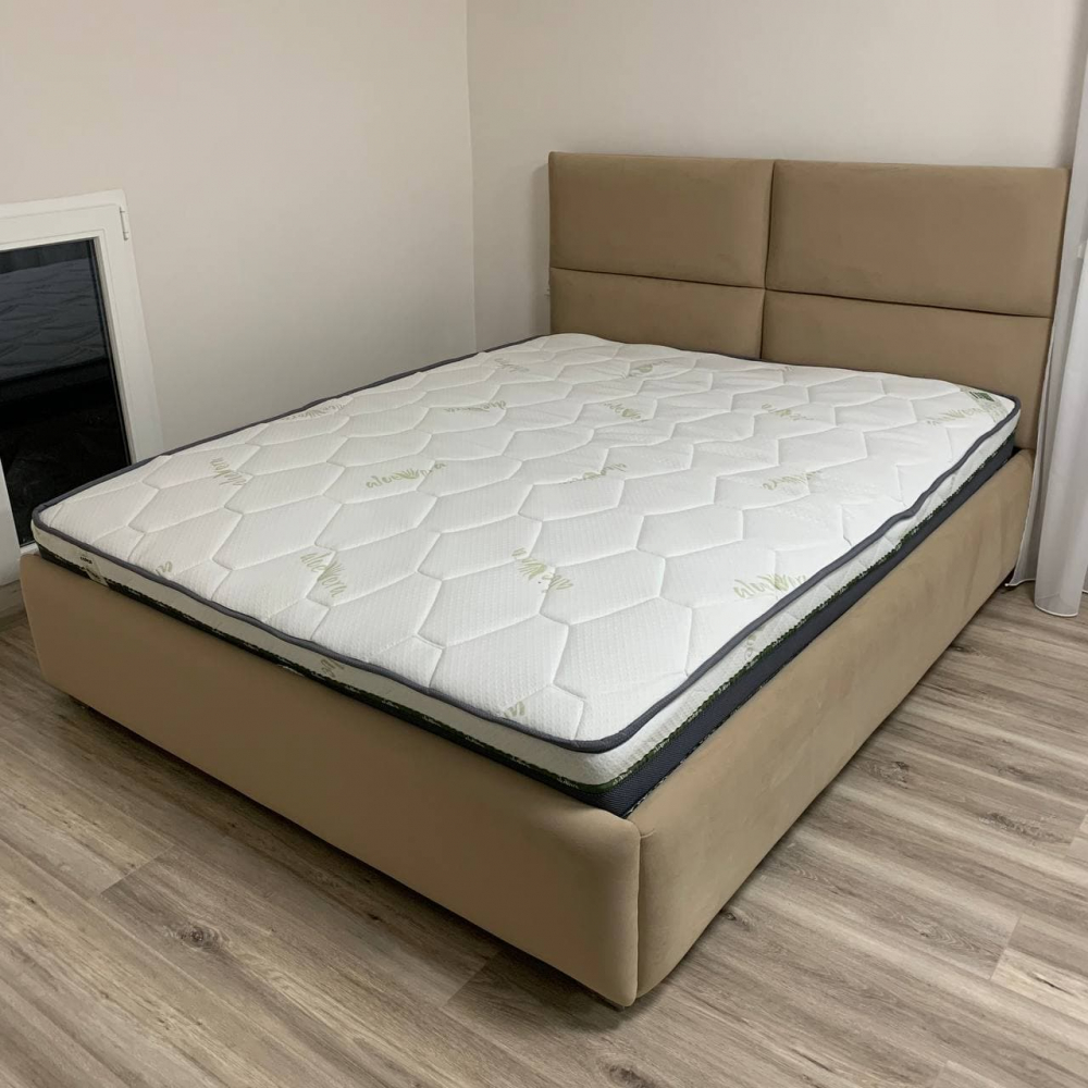 Чудове і комфортабельне ліжко для Вашої спальні.Ліжко з каркасом має м′яку оббивку.Розмір спального місця: 1550х1950 мм.Колір ніжок: Срібний.Постіль і подушки в комплект не входять.