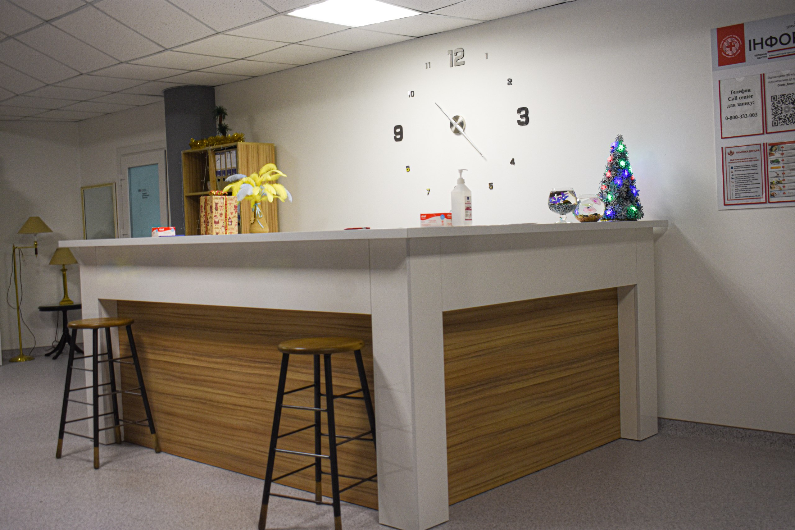 Рецепція: встановлено стійку для реєстрації донорів, що забезпечує ефективну організацію робочого процесу.