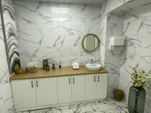 Вбиральні: меблі створені з урахуванням підвищеної вологостійкості. Шафи для зберігання, полиці та дзеркала органічно вписані в інтер’єр, забезпечуючи зручність і привабливий вигляд.