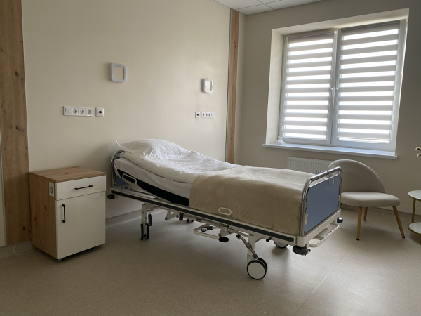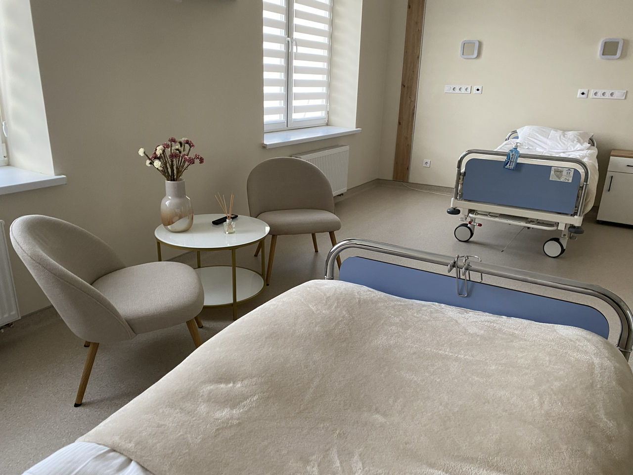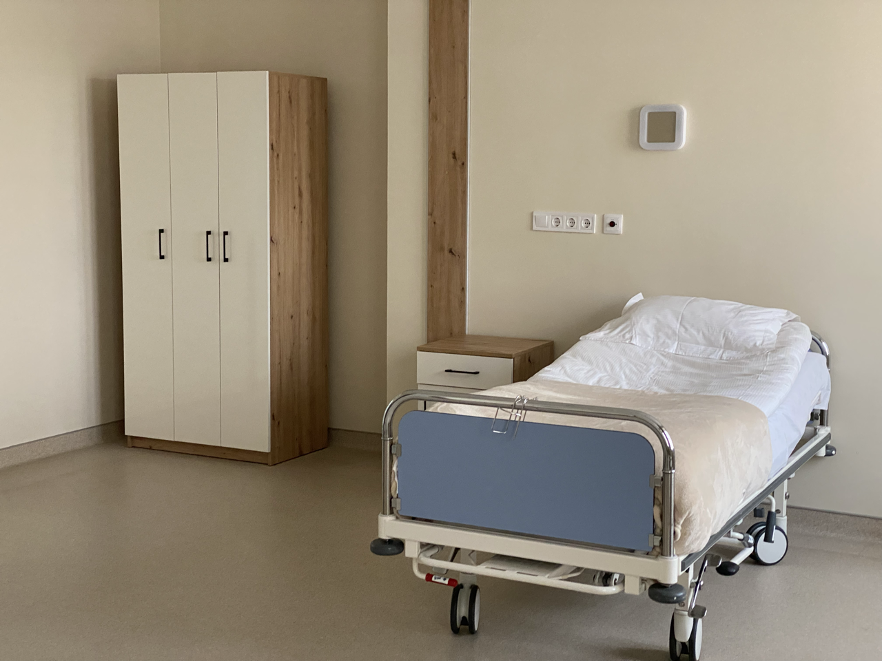 Палати: для пацієнтів розроблені зручні ліжка, тумби та шафи для особистих речей, які поєднують комфорт і практичність. Використані матеріали забезпечують легке очищення та довговічність.