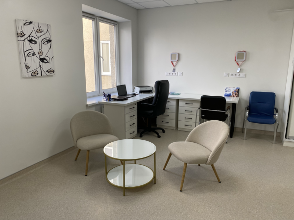 Кабінети: меблі для лікарів і процедурних кабінетів включають робочі столи, стільці та шафи-купе. Особлива увага приділена розташуванню робочих місць.