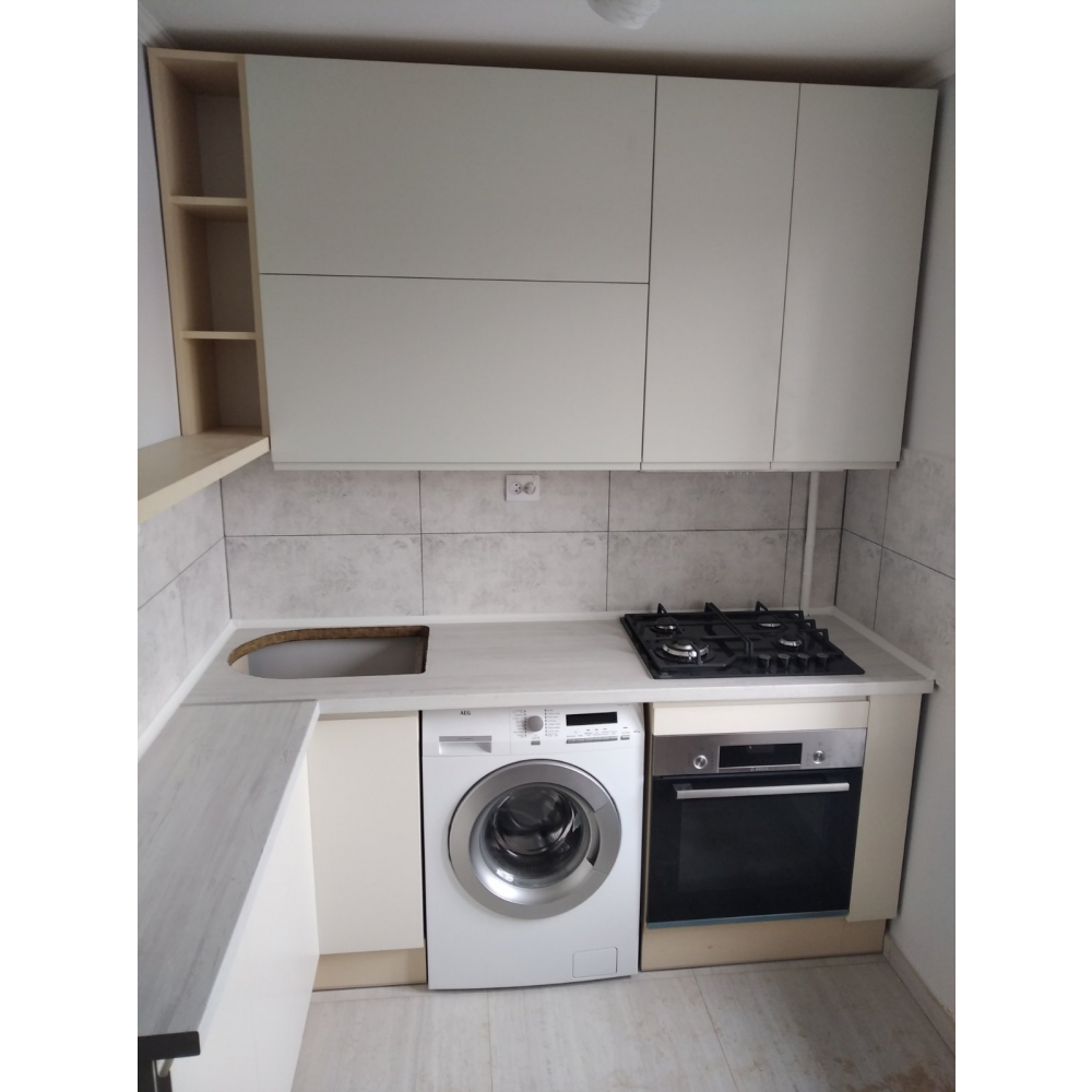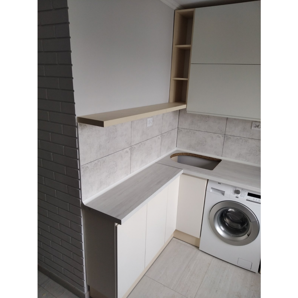 Прекрасна кутова кухня у модерновому стилі.Торці ДСП(Корпусу) кромковані PCV - 1 мм Меблева фурнітура: напрявляючі та завіси з функцією дотягу.Стільниця товщиною 38 мм.Тумбочки відкриваються при нажиманні на них.Розмір: індивідуальний.Гарантія: На фасад, механізми та стільниці.