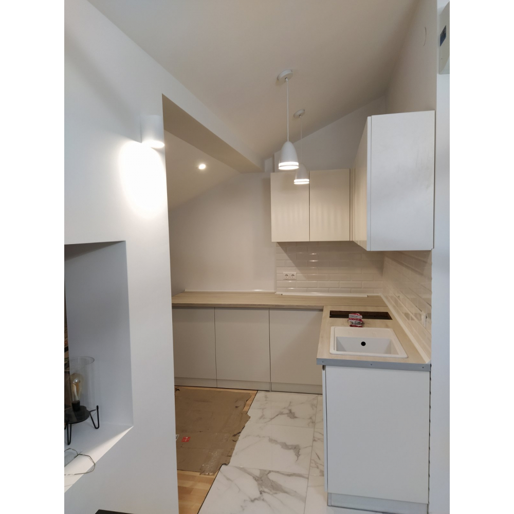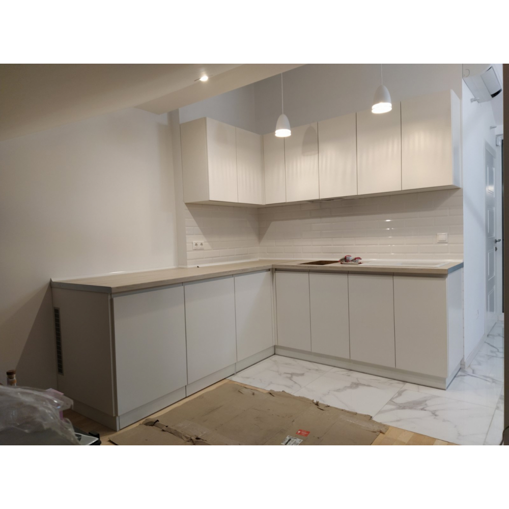 Це чудова кухня у модерновому МДФ стилі. Тумбочки при нажиманні самі відкриваються. Розмір: Індивідуально.