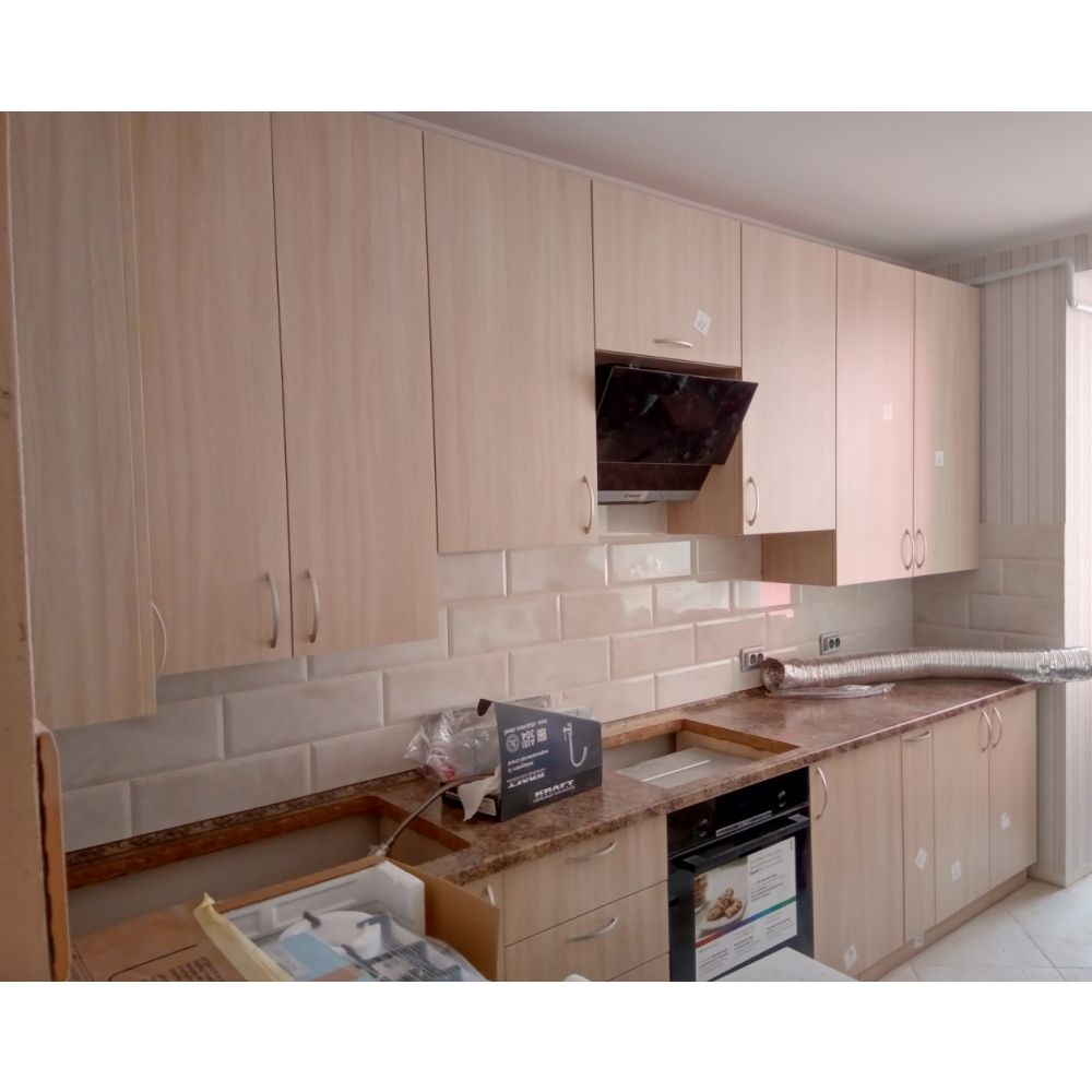 Стильна і комфортна кутова кухня.Торці ДСП (Корпусу) кромковані PCV - 1 мм.Меблева фурнітура: напрявляючі та завіси з функцією дотягу.Стільниця товщиною 38 мм.Розмір: Індивідуально.Колір ручок - Золото.Гарантія: На фасад, механізми та стільниці.