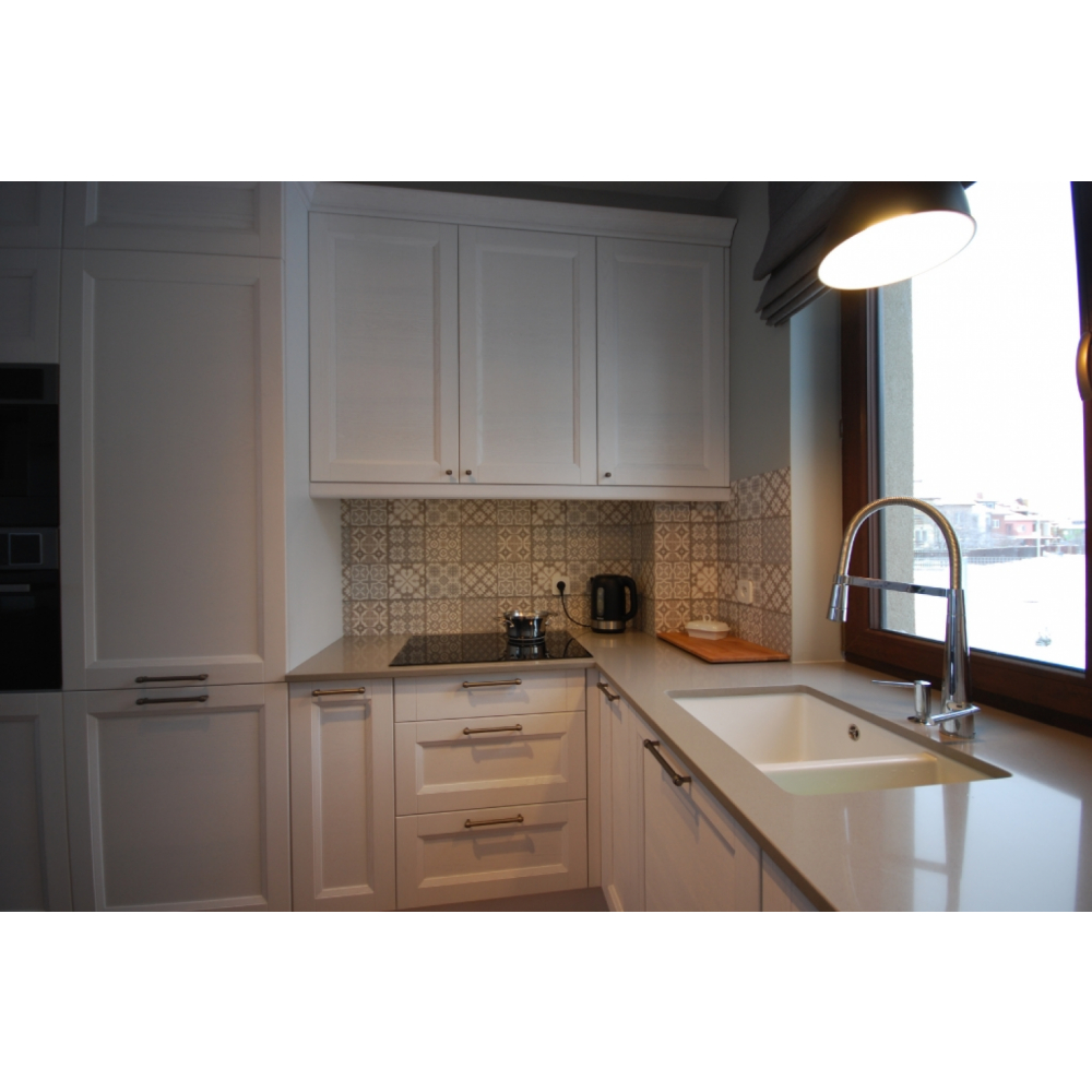 Це чарівна кутова кухня, що прекрасно впишеться у ваші мрії.Торці ДСП (Корпусу) кромковані PCV - 1 мм.Меблева фурнітура: напрявляючі та завіси з функцією дотягу.Стільниця товщиною 38 мм.Розмір: Індивідуально.Колір ручок: Золото.Гарантія: На фасад, механізми та стільниці.