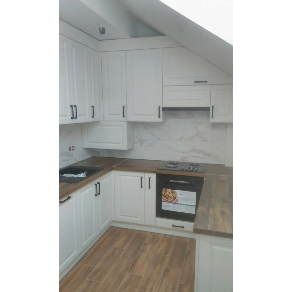 Це прекрасна та чудова кухня вашої мрії.Торці ДСП (Корпусу) кромковані PCV - 1 мм.Меблева фурнітура: напрявляючі та завіси з функцією дотягу.Стільниця товщиною 38 мм.Розмір: Індивідуально.Колір ручок: Сатин.Гарантія: На фасад, механізми та стільниці.