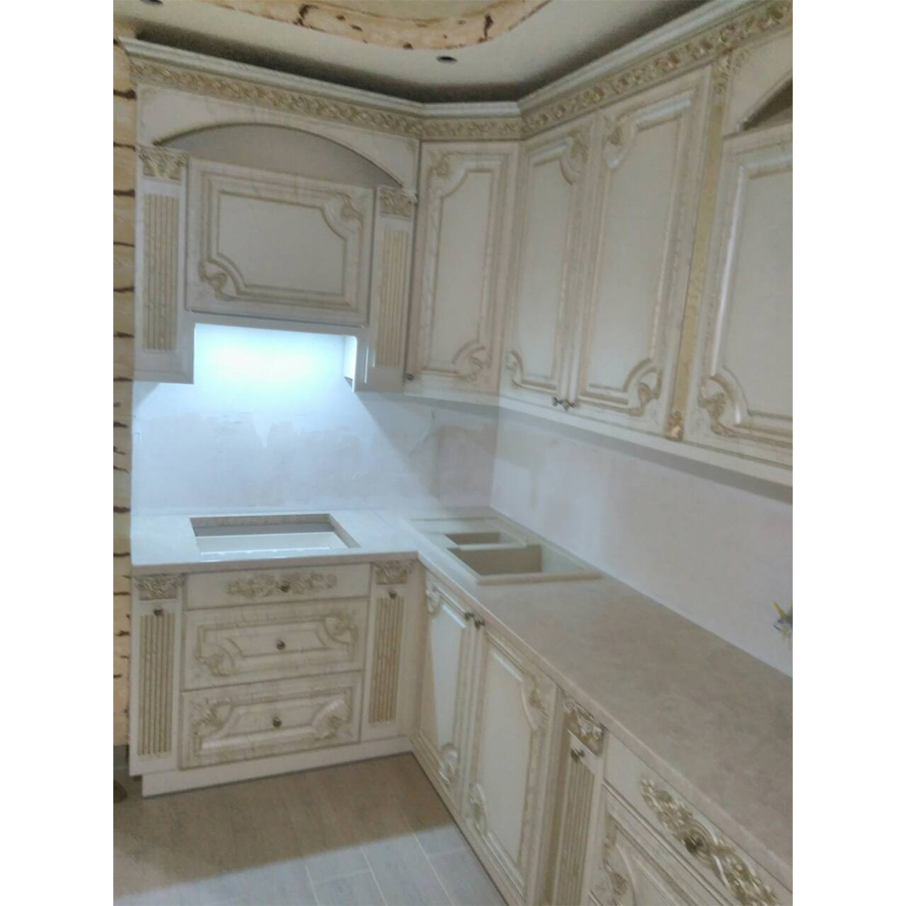 Кутова кухня, що чудово підійде для вашого дому. Торці ДСП (Корпусу) кромковані PCV - 1 мм. Меблева фурнітура: напрявляючі та завіси з функцією дотягу. Стільниця товщиною 38 мм. Розмір: Індивідуально. Колір ручок - Хром. Гарантія: На фасад, механізми та стільниці.