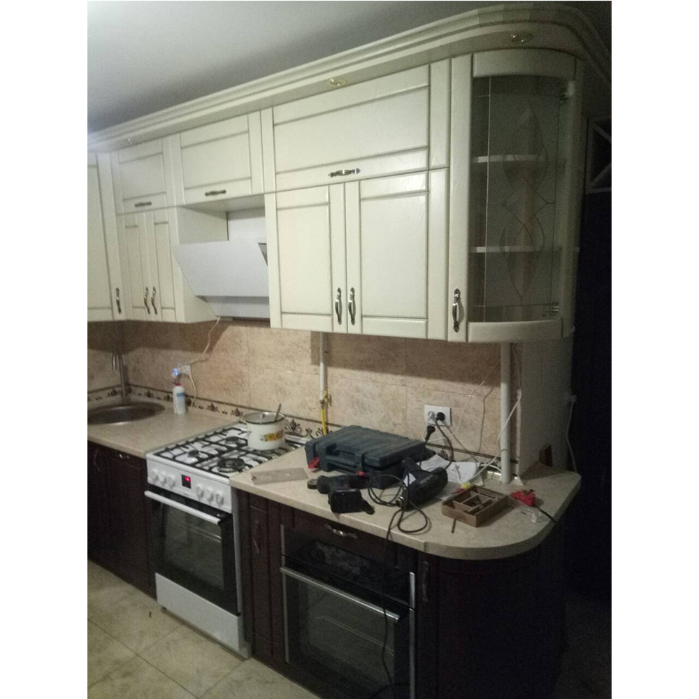 Кутова кухня, яка добре вам послужить. Торці ДСП (Корпусу) кромковані PCV - 1 мм. Меблева фурнітура: напрявляючі та завіси з функцією дотягу. Стільниця товщиною 38 мм. Розмір: Індивідуально. Колір ручок - Хром. Гарантія: На фасад, механізми та стільниці.