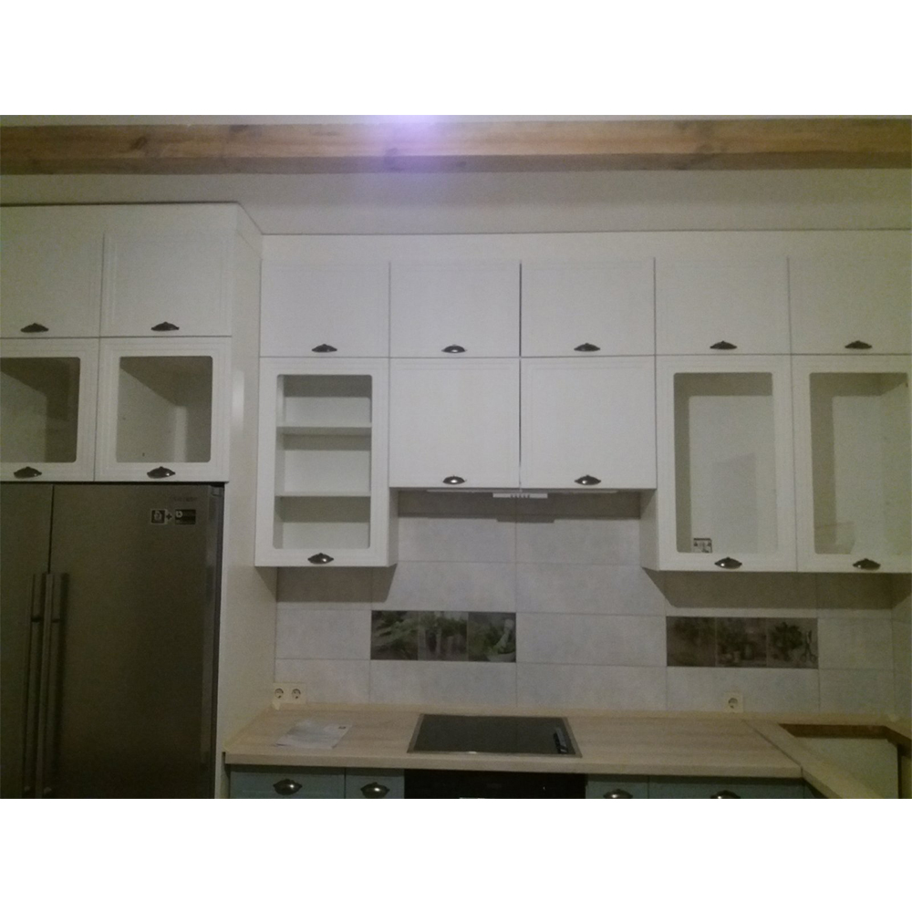 Кутова кухня, що чудово підійде для вашого дому. Торці ДСП (Корпусу) кромковані PCV - 1 мм. Меблева фурнітура: напрявляючі та завіси з функцією дотягу. Стільниця товщиною 38 мм. Розмір: Індивідуально. Колір ручок - Хром. Гарантія: На фасад, механізми та стільниці.