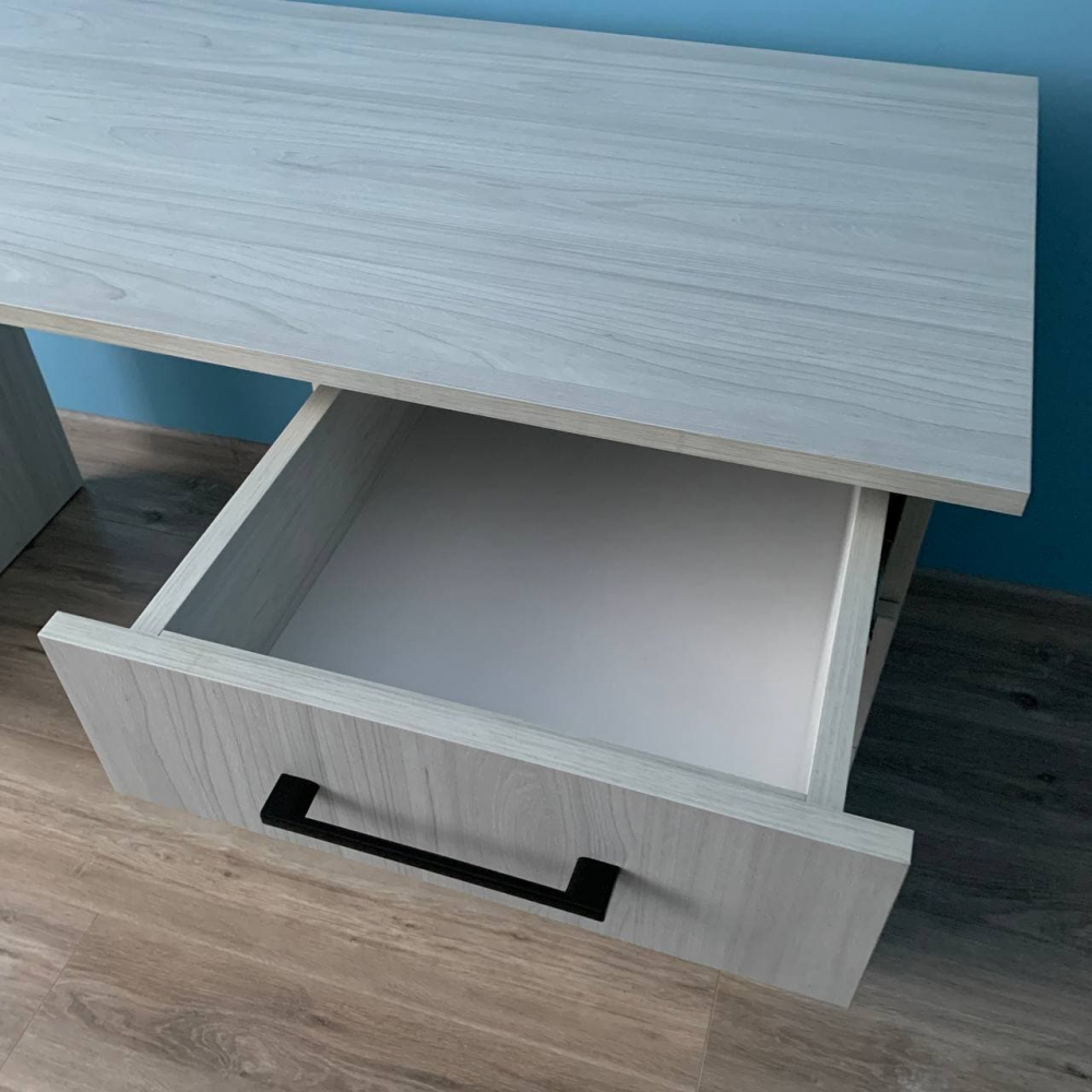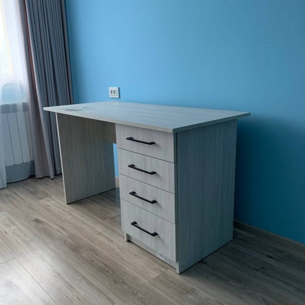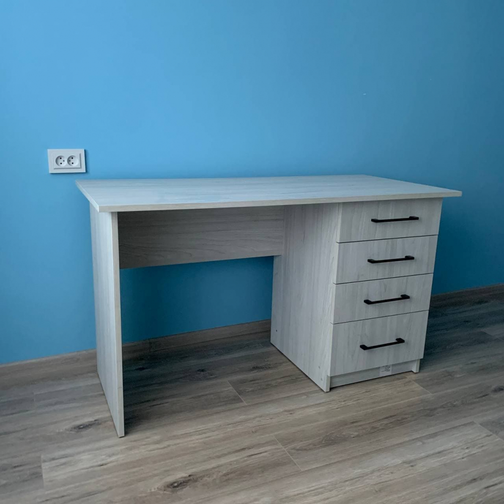 Чудовий стіл для вашої оселі.Справа є 4 шухляди для різних речей.Розмір робочої поверхні: 1300х600 мм.Висота стола: 740 мм.Колір ручок: Венге slim.