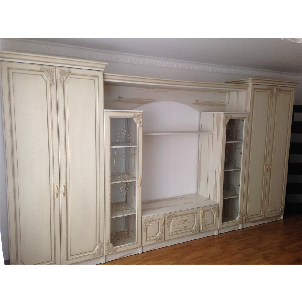 Елегантна і модна стінка.Посередині місце для телевізора.Розмір: Індивідуально.Колір ручок - Золото.