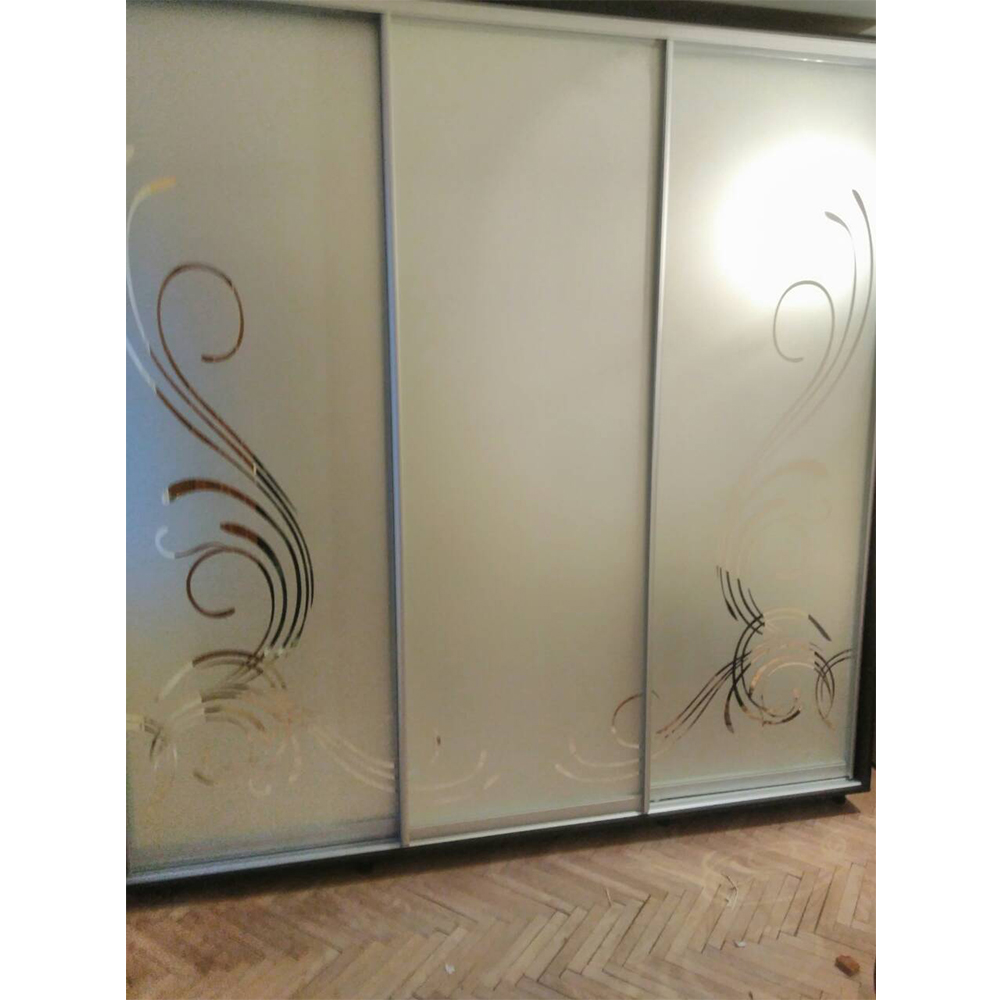 Шафа-купе двері - дзеркало з піскоматуванням, фон - матовийРозмір: 2400 х 600 х 2400Колір розсувної системи - Срібло