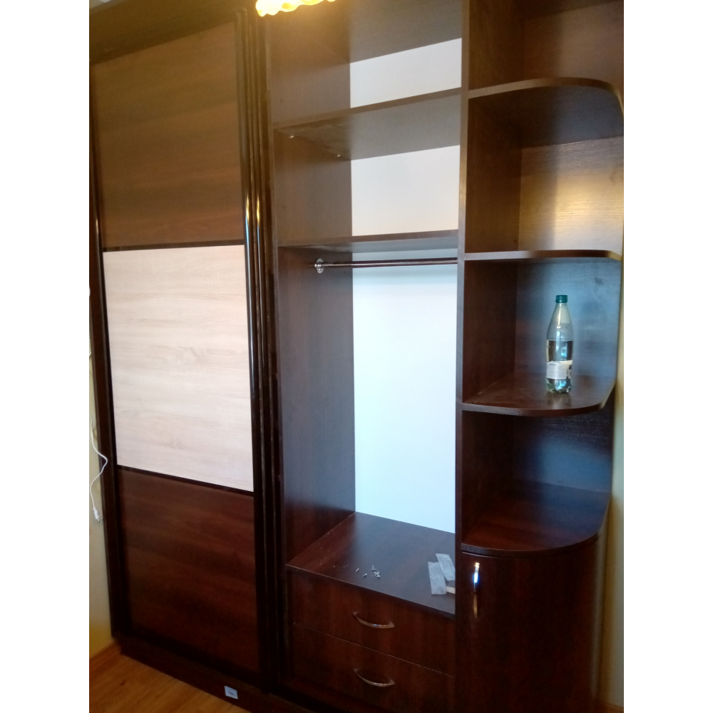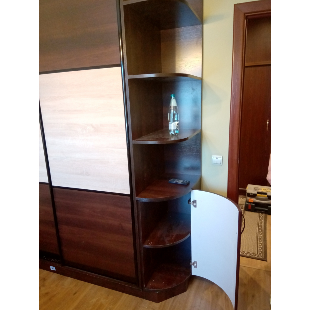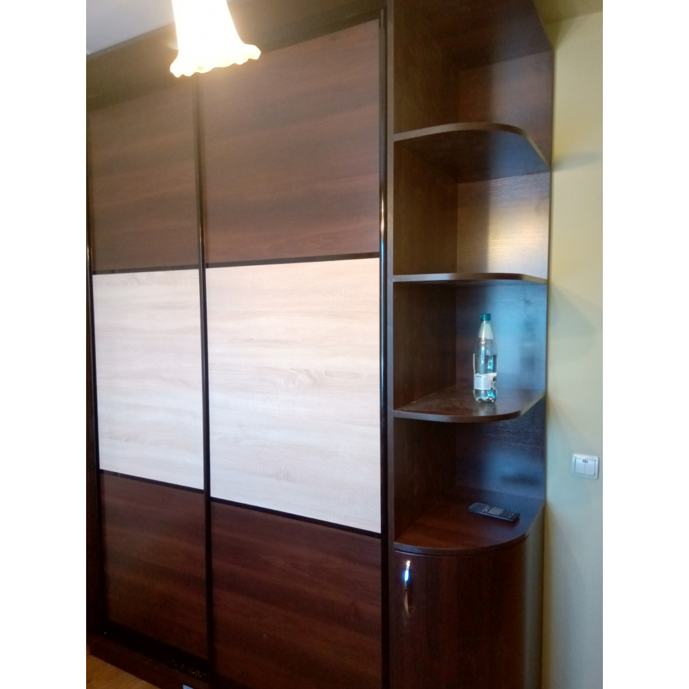 Шафа-купе має 2 дверей, які зроблені з ДСП і має кутове закінчення.Розмір: Індивідуальний.Колір розсувної системи - Венге slim.